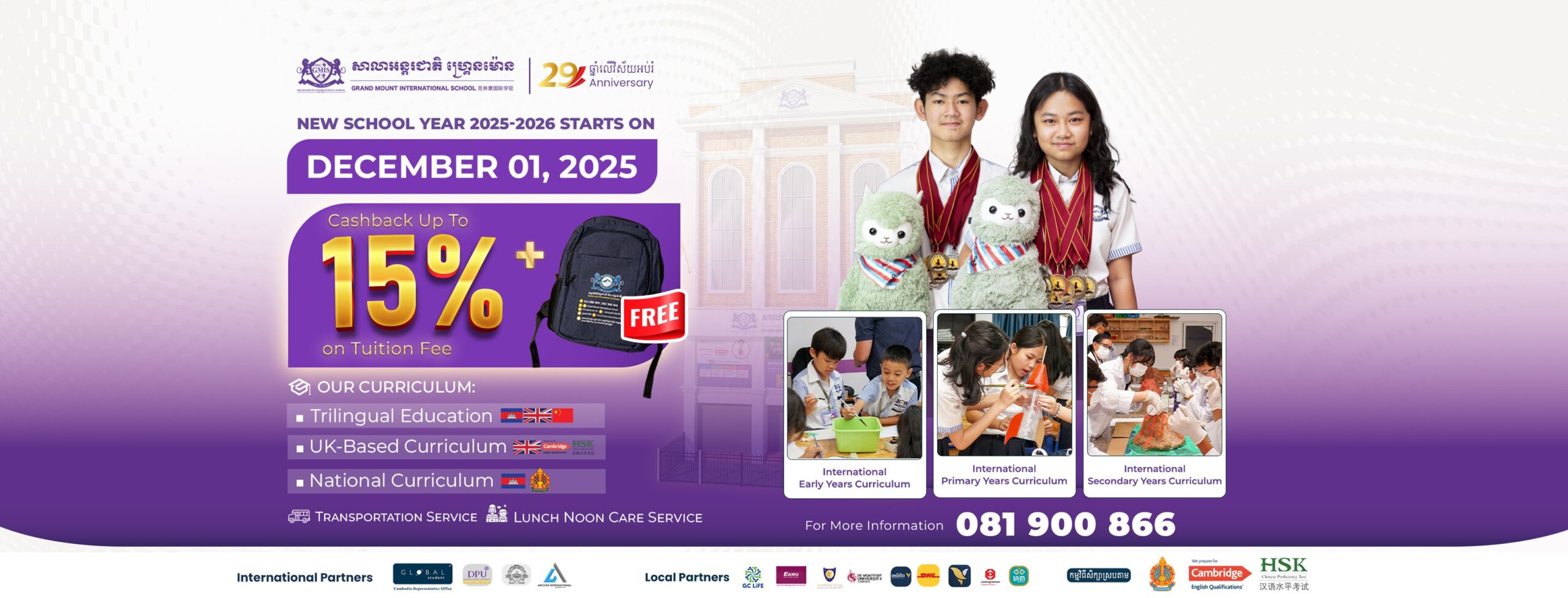 Grand Mount International School was founded in 2016 to offer a quality of both the Khmer National and International Curricular.